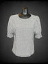 L Ann Taylor black and white short sleeve gingham top with shirred cuffs on sleeves