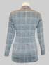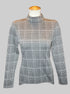 L Black, grey, and silver metallic plaid and houndstooth patter long sleeve top with mock neck, and zipper in back