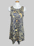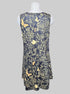 L black sleeveless dress with gold colored florals with butterflies, and pockets