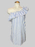 L blue and white striped sleepless dress with one shoulder, and ruffle design on neck line