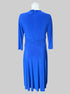 L Blue half sleeved dress with flowy layered design on front, and zipper on back