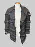 L brown, black and silver fringe jacket with large collar and leather lining on neck line