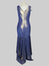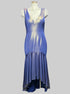 L ever❤️ pretty blue sleeveless gown with gold metallic, high low trim, and back zipper