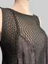 L flowy black loose knit top with sheer black panels