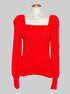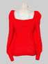 L H&M red knit long sleeve sweater with square neckline and puff sleeves