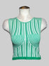 L Love J USA green and white striped sleeveless top with circular pattern on chest