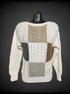 L Nansport white, brown, and grey knit sweater with chunky color block design