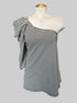 L One shoulder black and white striped top with embellished shoulder and belt loops