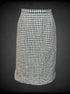 L Talbots vintage two piece black and white checkered jacket and skirt set with square buttons, and zipper/button on back of skirt