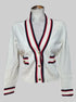 L Ted Baker white button up cardigan with red and blue details and gold color buttons