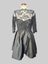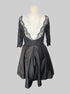 L vintage black beautiful dress with floral lace top and puffy pleated bottom, with open back