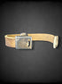 Leather bracelet with Celtic knot embossing and swirl metal pendant handmade in Ireland by Lee River