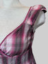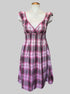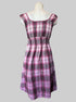 M Black, grey, pink, white, and silver tinsel plaid dress with shirred waist and scallop neckline