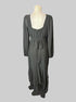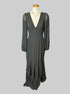 M black long balloon sleeve dress with flowy bottom, and zipper and tie on back