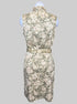 M Charter Club sleeveless button up brownish green dress with light brown and slight red florals and detachable belt