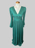 M Dark green long sleeve dress with sequence, faux wrap design, and cuffs with buttons
