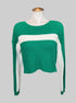 M green and white striped knit, long sleeve cropped sweater with slits on sides