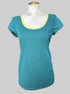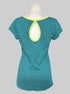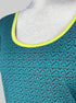 M Greenish blue top with black geometric pattern, back cut out, and yellow hem line
