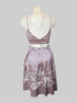 M Dusty purple fit and flare dress with beautiful white embroidery and beaded flowers and a tie in front or back