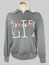 M Heathered gray pullover sweater with white “Lit” and Christmas lights