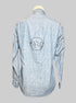 M J Crew Jeans blue denim button down top with front chest pocket, and hand embroidered design on back