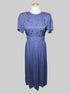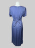 M Just In Time LTD vintage navy blue short sleeve dress with tie and zipper on back, and botanical embroidery on front