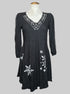 M Mudd black dress with white embroidery, string, and hand painted snow flakes