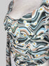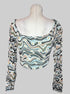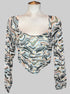 M NWT Multicolor long sleeve top with sheer sleeves, underwire in chest, and ruching in the front