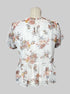 M Paper Crane white short sleeve top with floral design, and button and keyhole on back