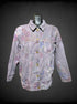 M Susan Graver vintage purple denim jacket with floral patterns, and bleach dying in spots