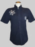 M Topman navy blue button up shirt with hand painted snowflakes