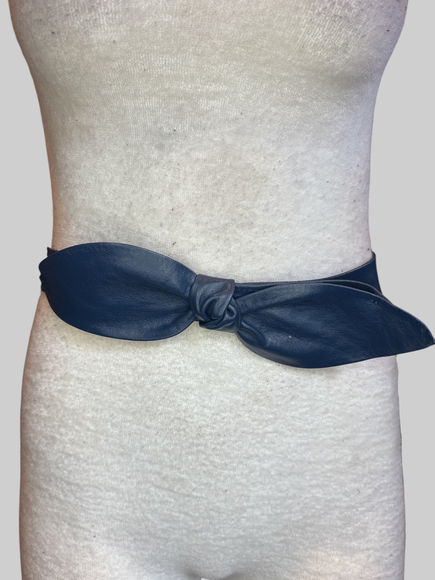 M Vintage blue leather Velcro belt with bow