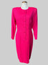 M Vintage hot pink long sleeve dress with buttons on front and shoulder pads