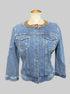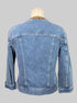 M vintage long sleeve denim jacket with pockets, snap buttons, and brown bedazzled collar