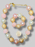 Matching necklace and bracelet with big chunky pink, white, and gold beads
