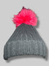 New York & Company Black knit beanie with pink fluffy pom-pom