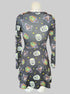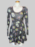 S Black long sleeve fit and flare dress with cat, witch, skull, and stars graphic