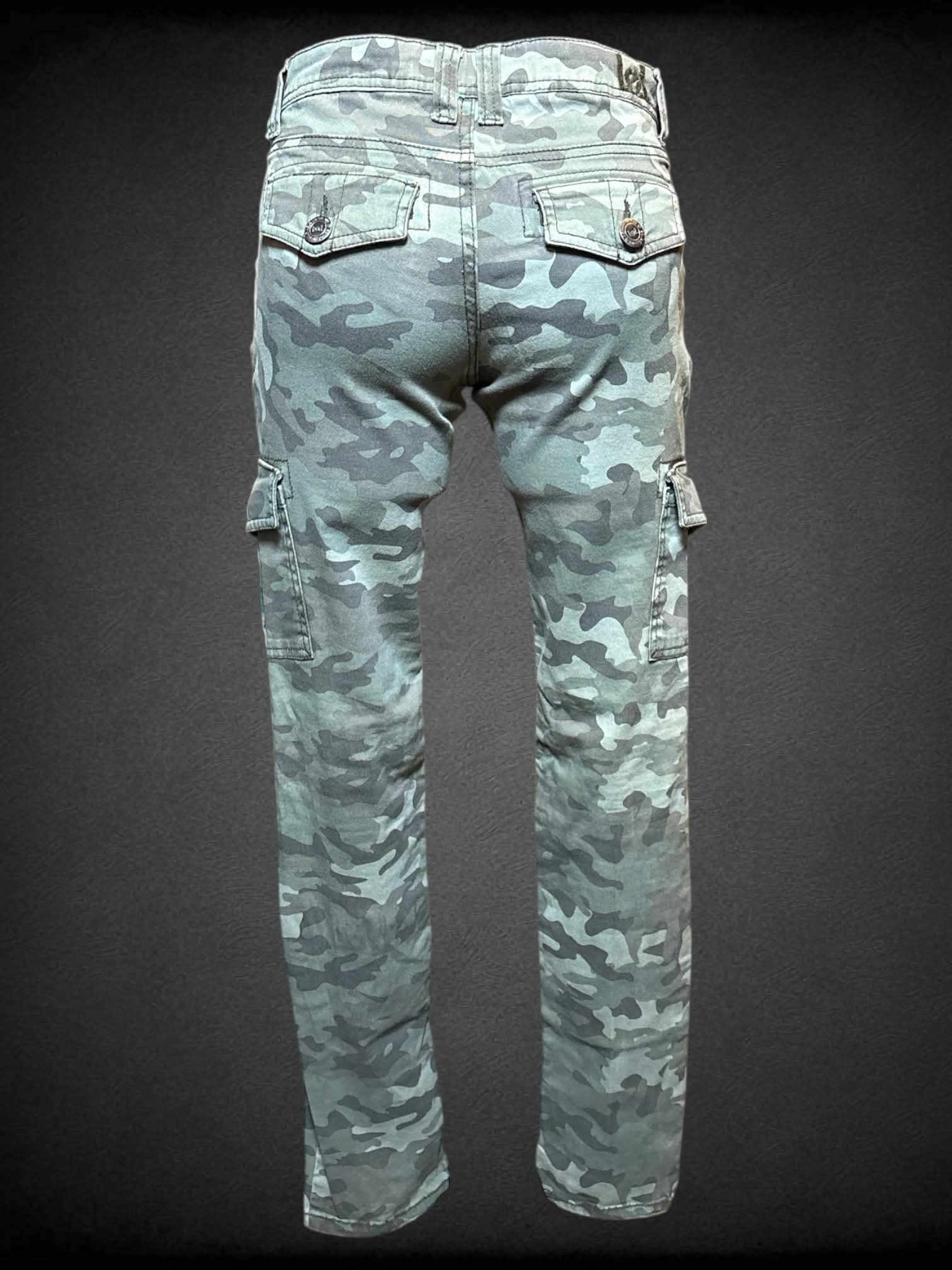 S L.E.I. camo pants with belt loops, and multiple pockets