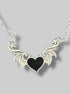 Silver tone necklace with wings and black heart