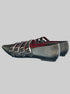 Size 10 Black pointed flats with multiple straps and red spiderweb interior