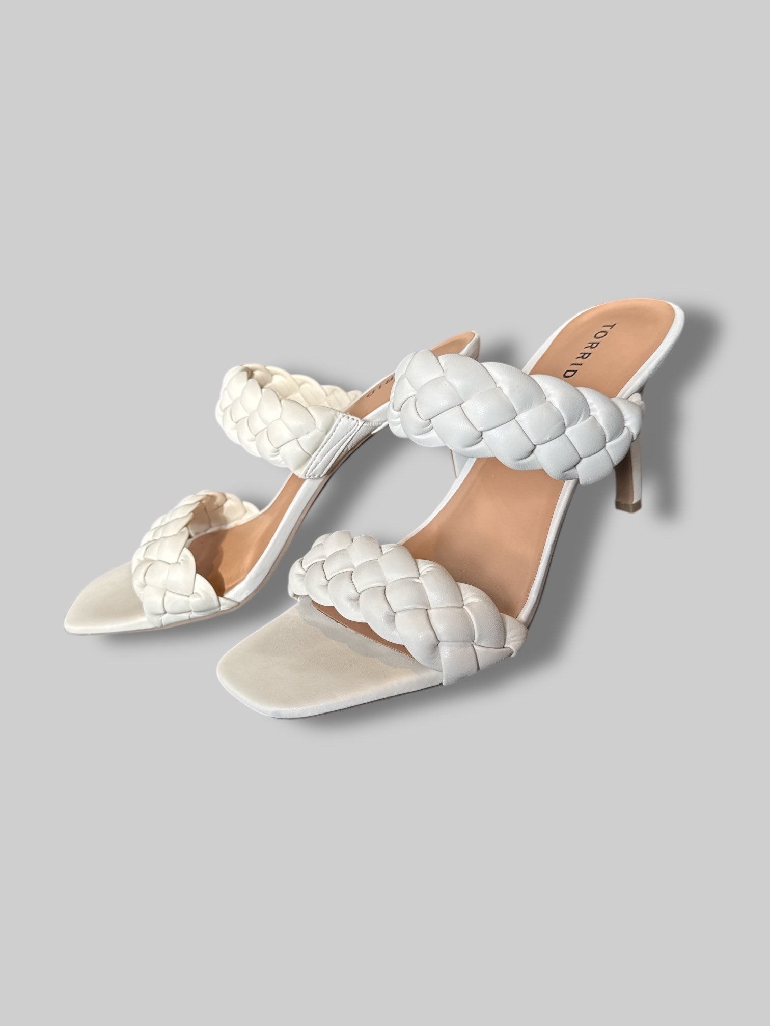 Size 13WW Cream braided heeled sandals