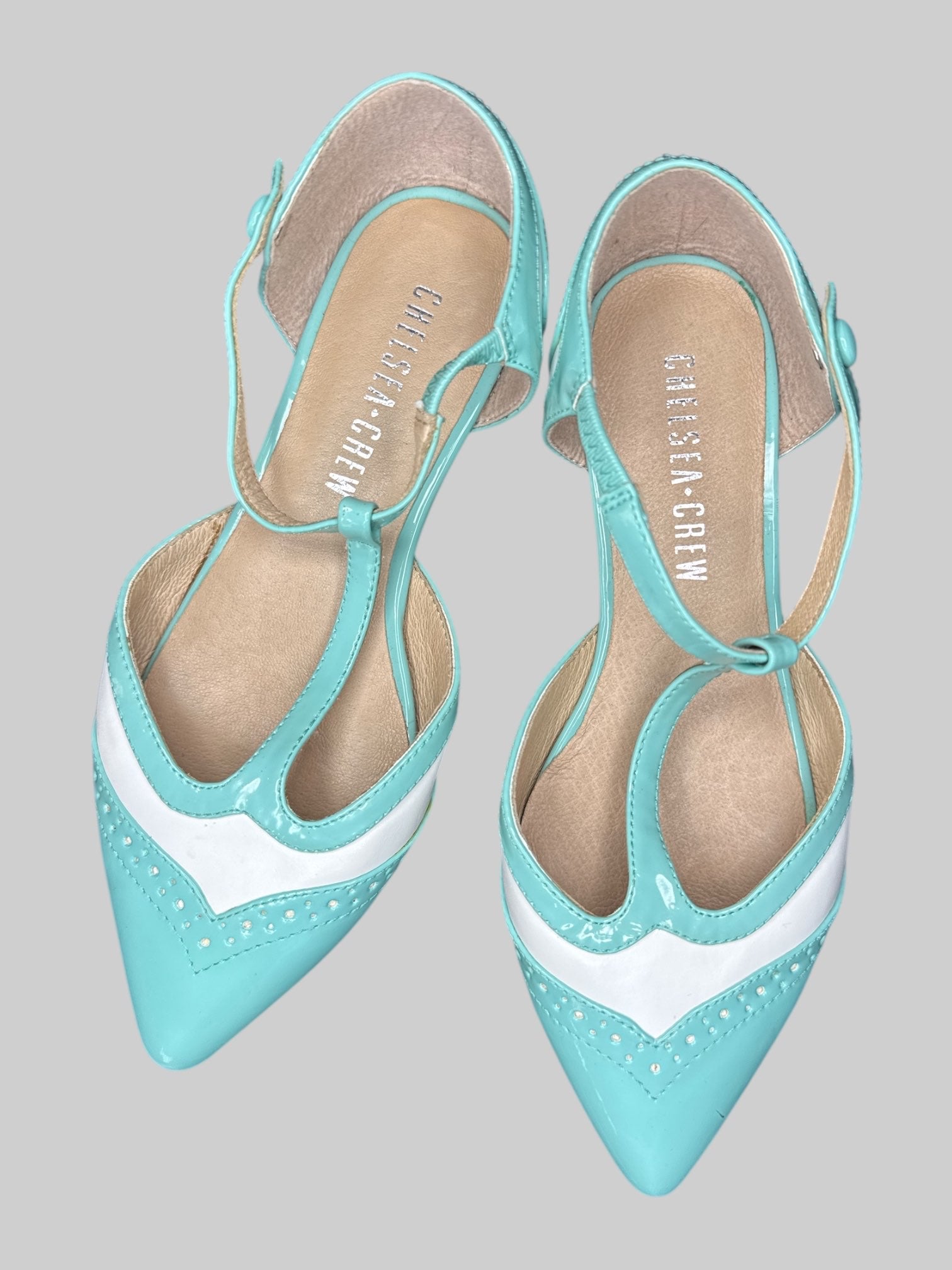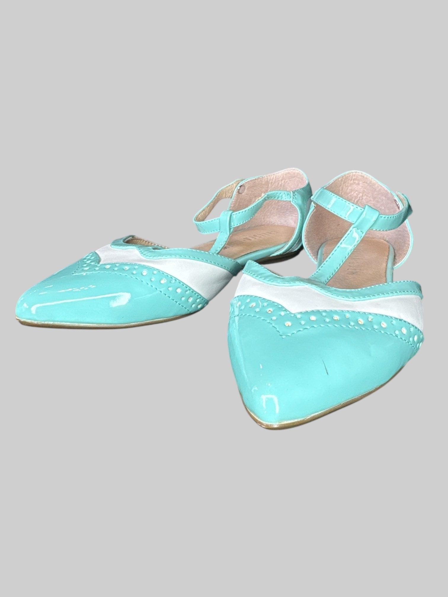 Size 36, 5.5-6 in US sizing blue and white pointy toe flats