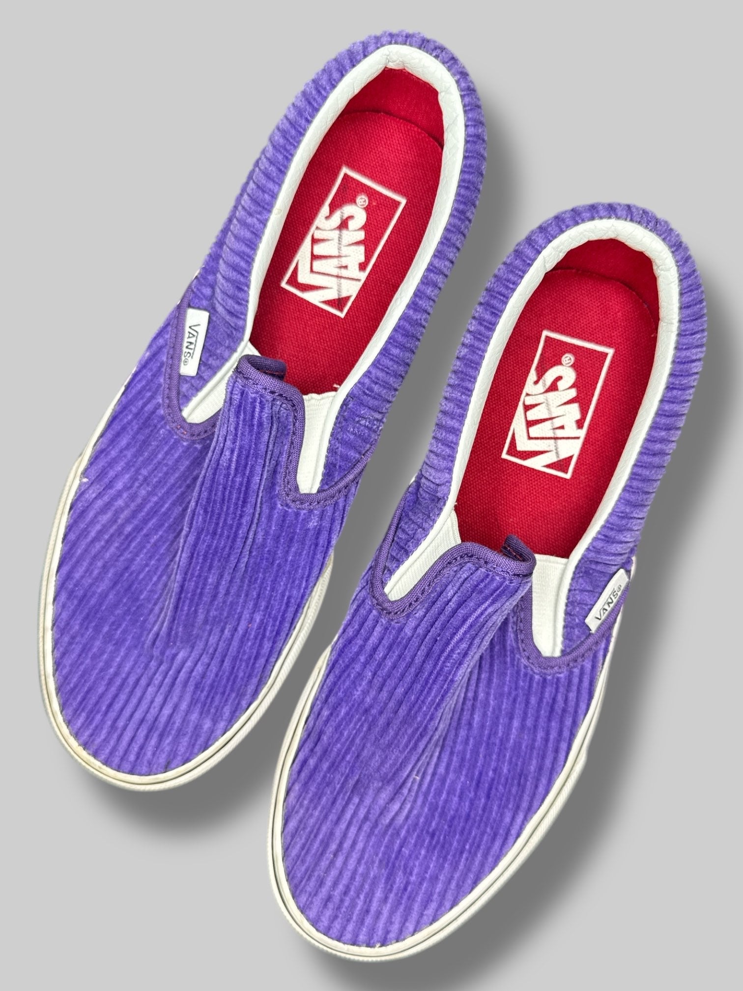 Size 5.5 men or size 7 women slip on purple corduroy vans