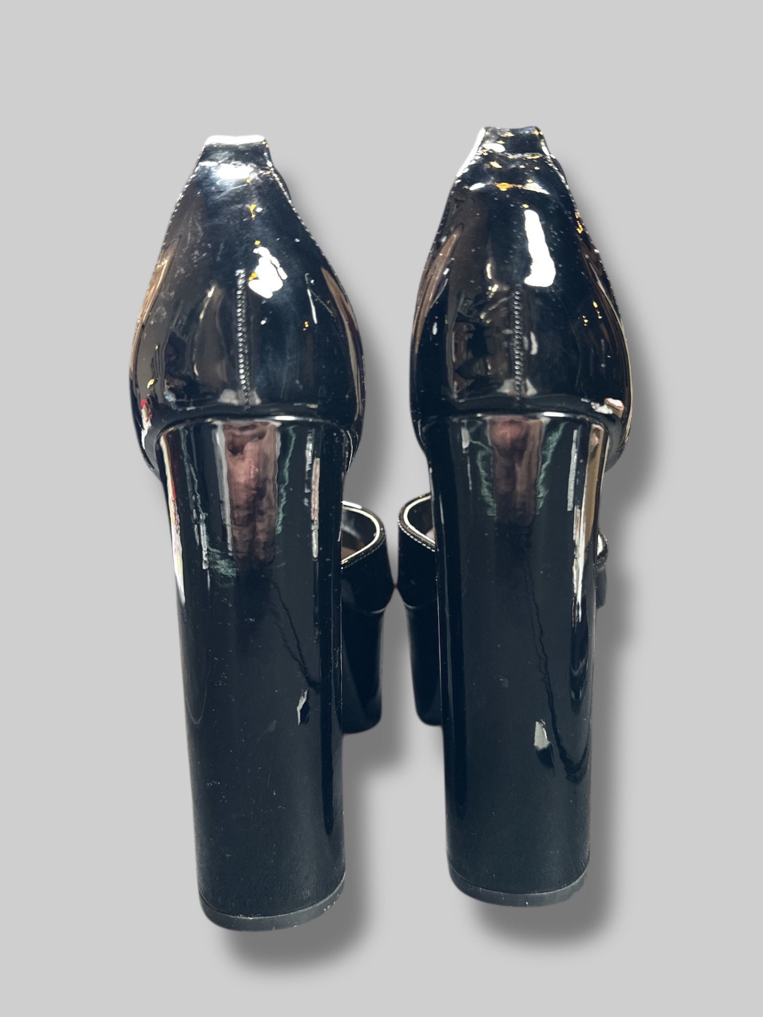 Size 5W Public Desire black 6’ open toe heels with ankle strap