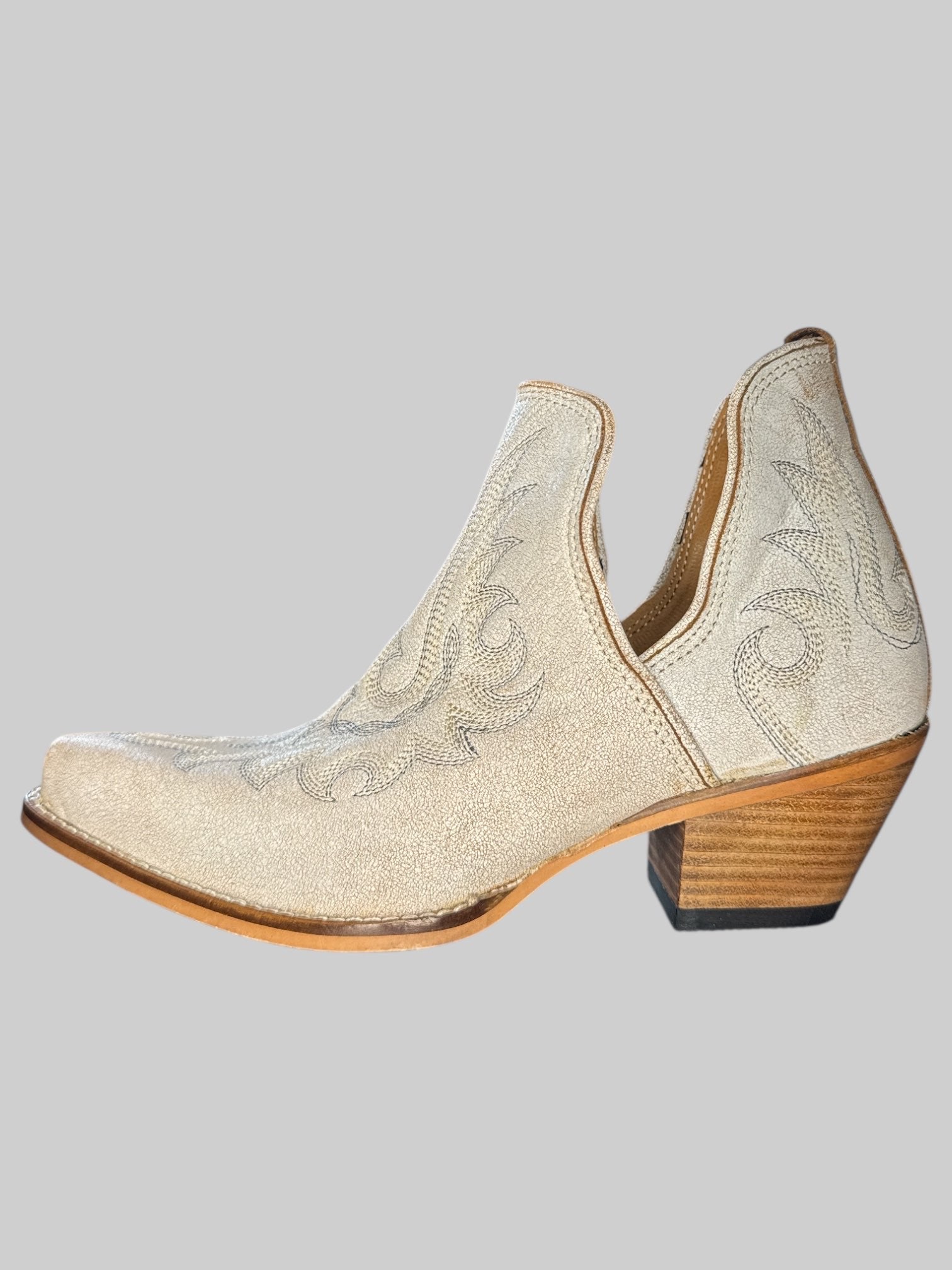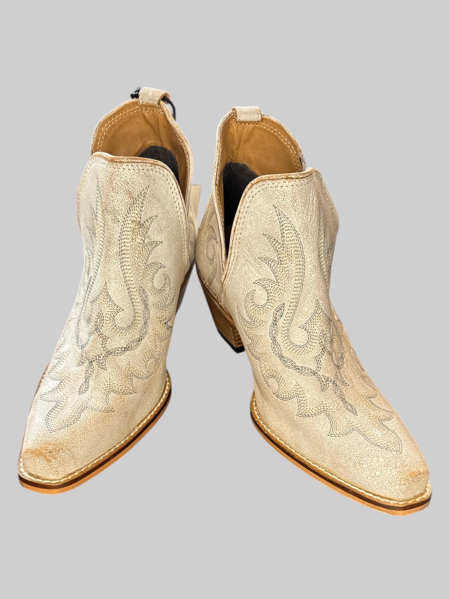 Size 6 NWT Myra white leather heel boots with ordinate stitching