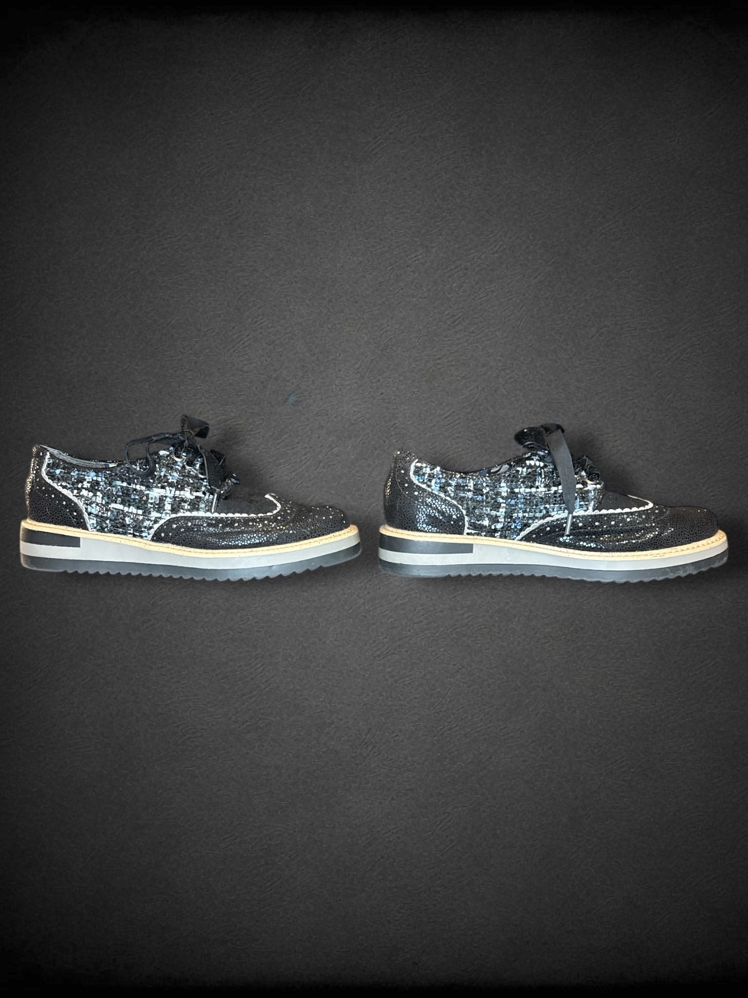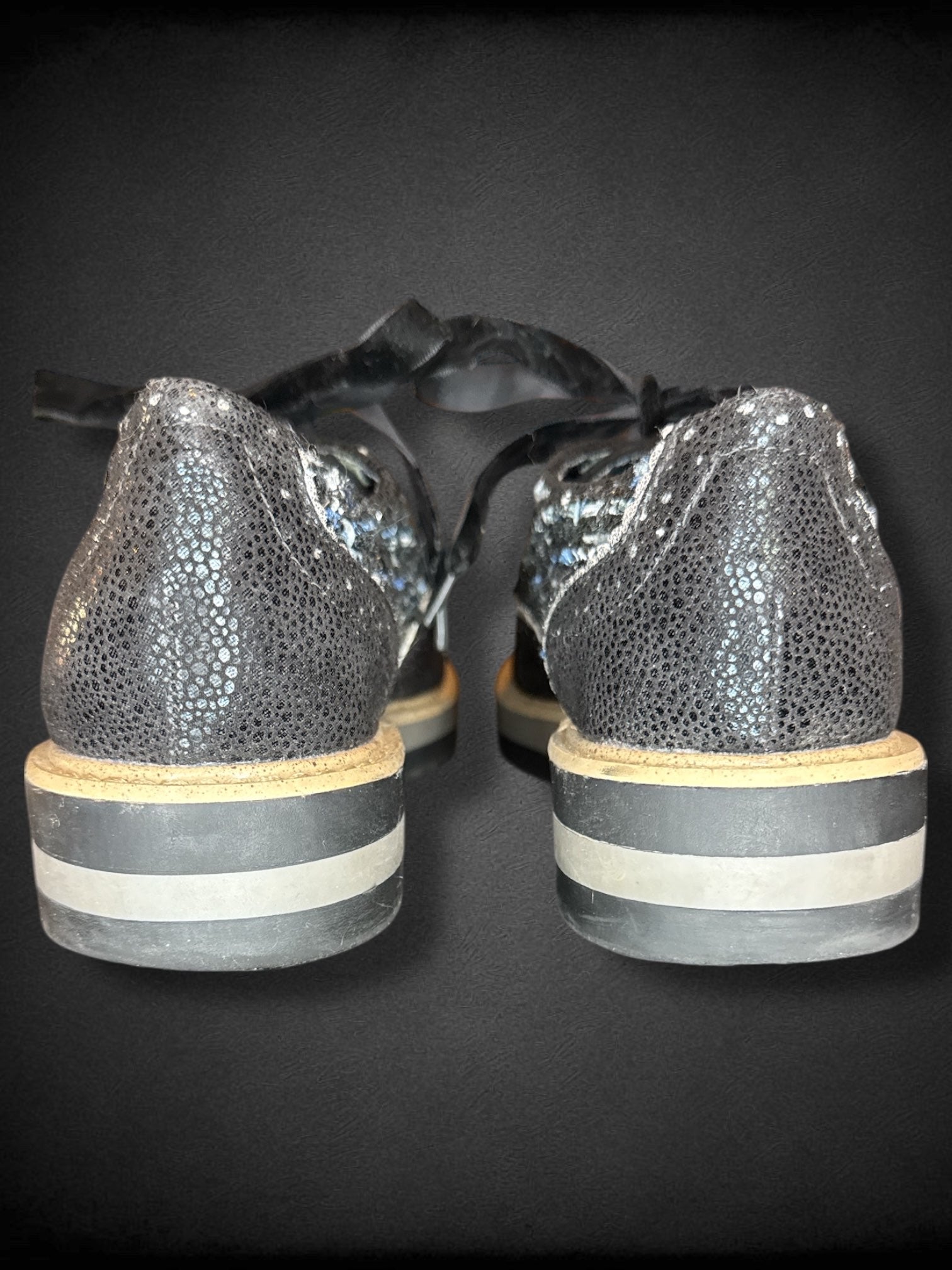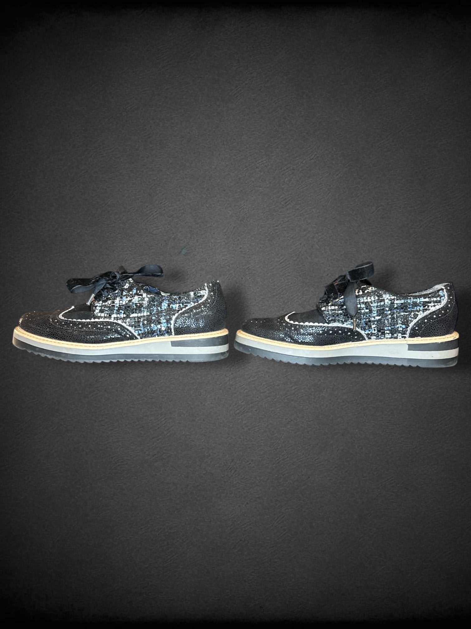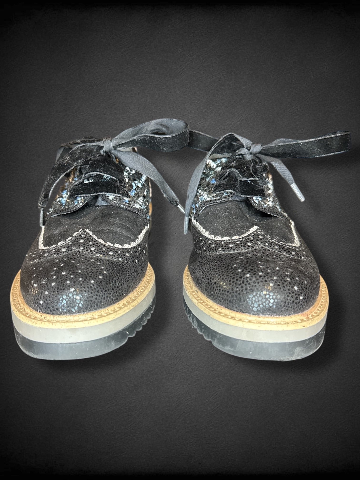 Size 6 women’s Ruby Shoo black textured sneakers with velvet laces