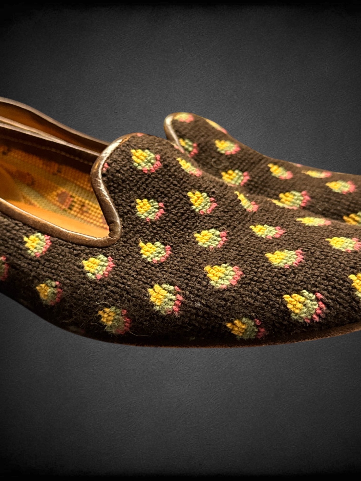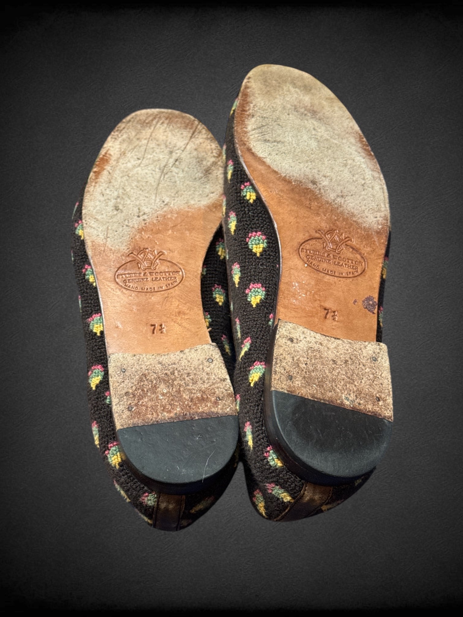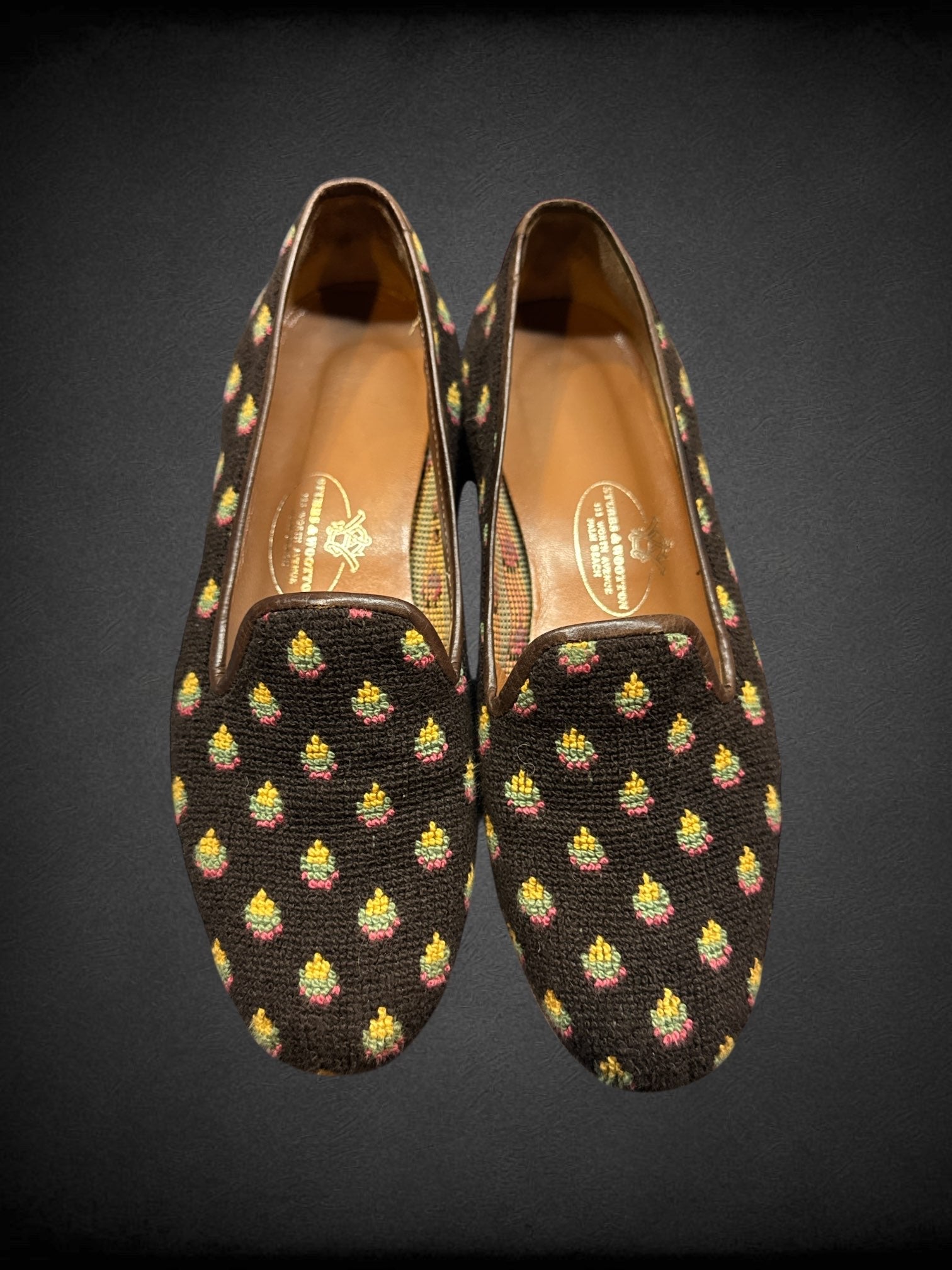 Size 7.5 Stubbs & Wooten brown allover needlepoint slip on loafer