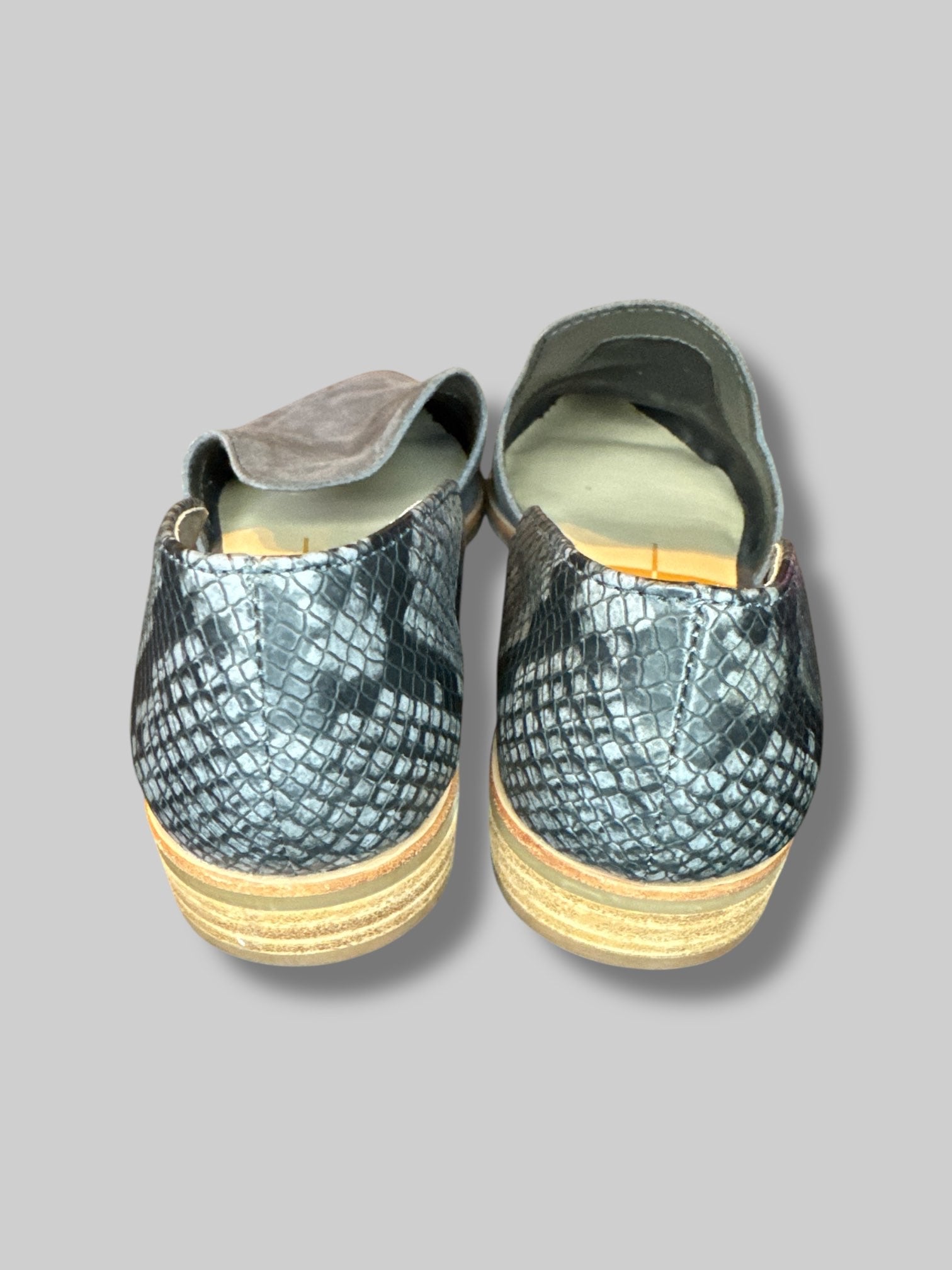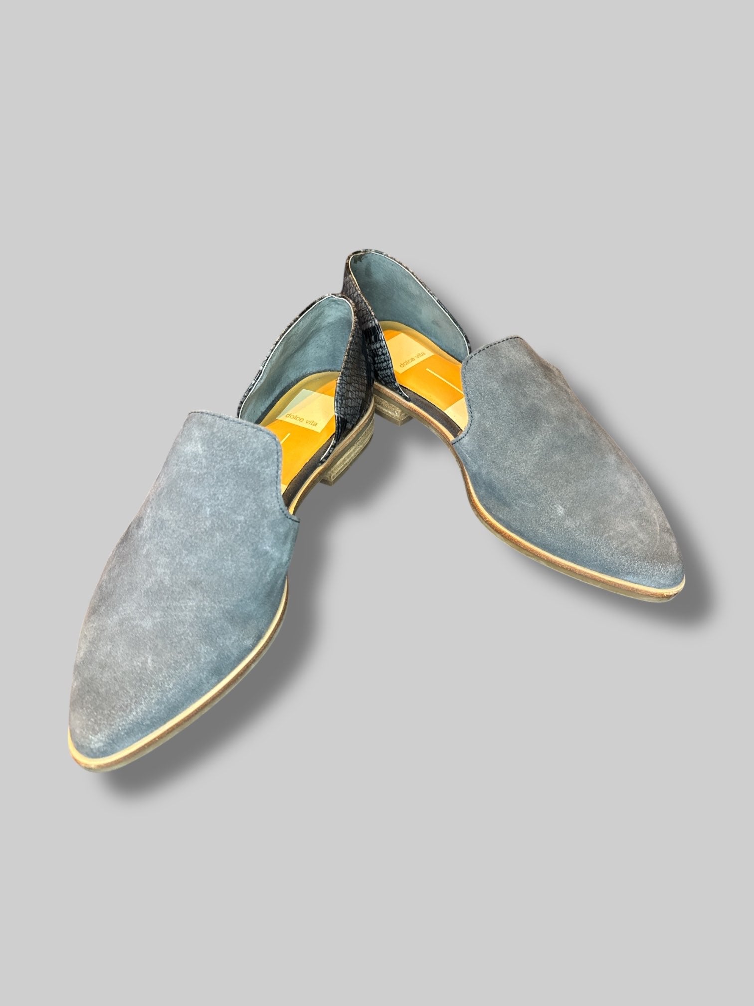 Size 7.5M Blue suede shoes with snake skin design on heel