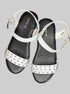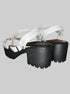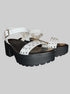 Size 8.5 NWT black wedge heels with white ankle strap and white studded strap