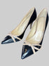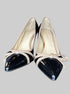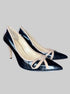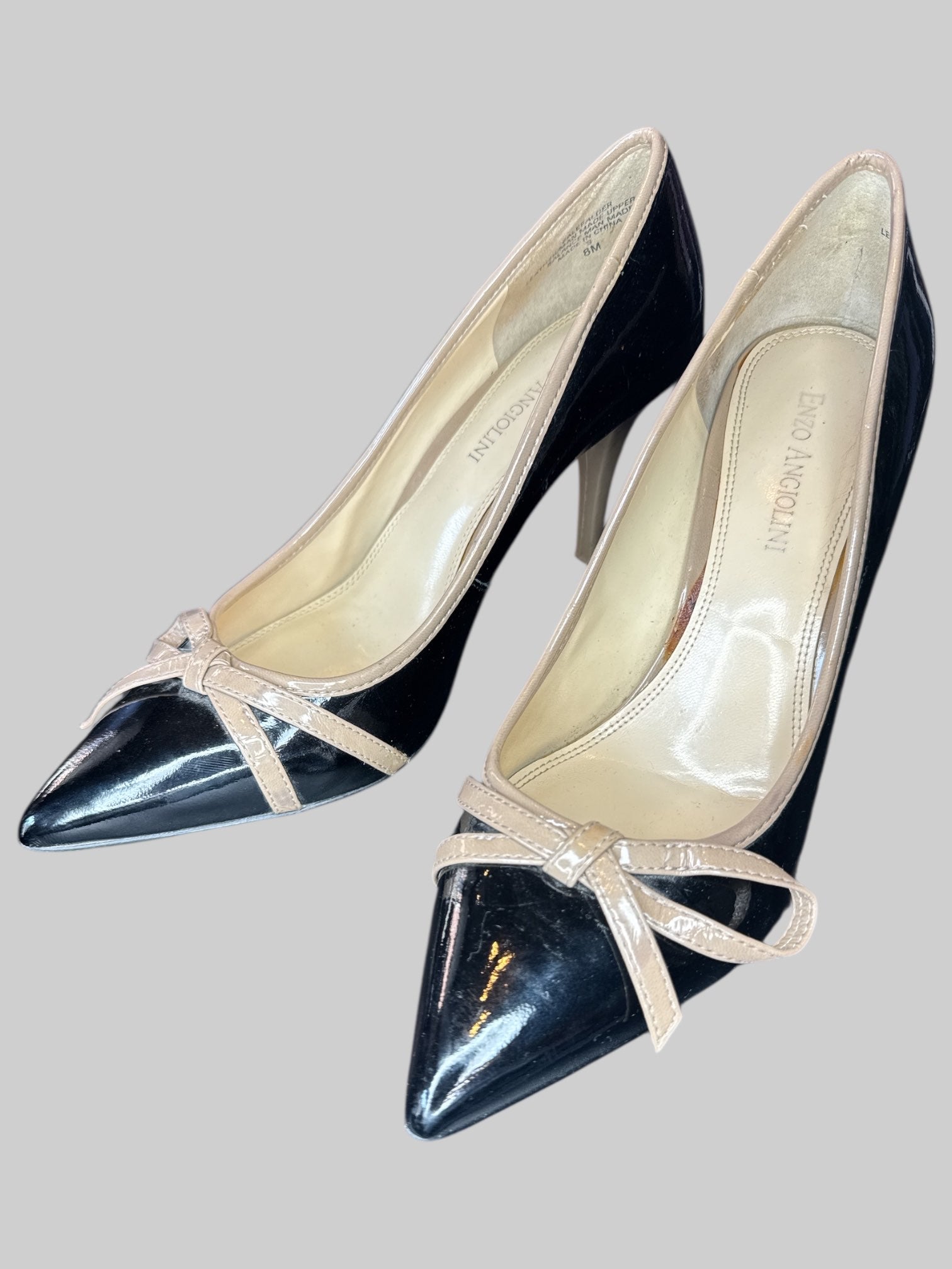 Size 8 Enzo Angiolini leather black bow tie heels with some scuff marks